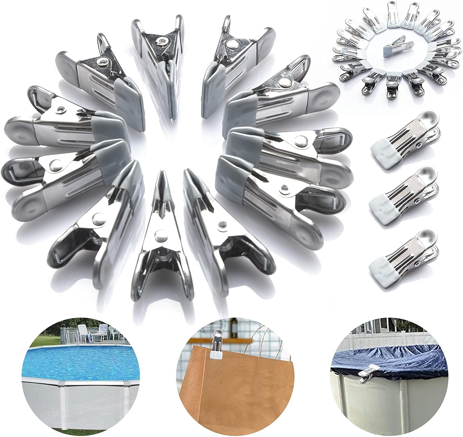 Amazon Com Gornorva 30 Pcs Swimming Pool Above Ground Winter Cover Clips Secure Your Winter Pool Cover Attaches To Top Rail Wind Guard Clips Multifunctional Metal Clips Towel Clips Spring Clamps